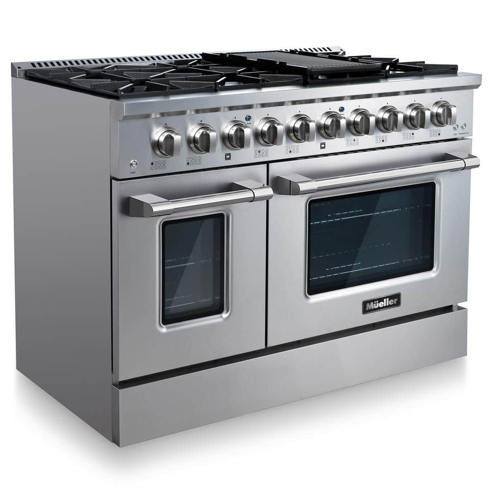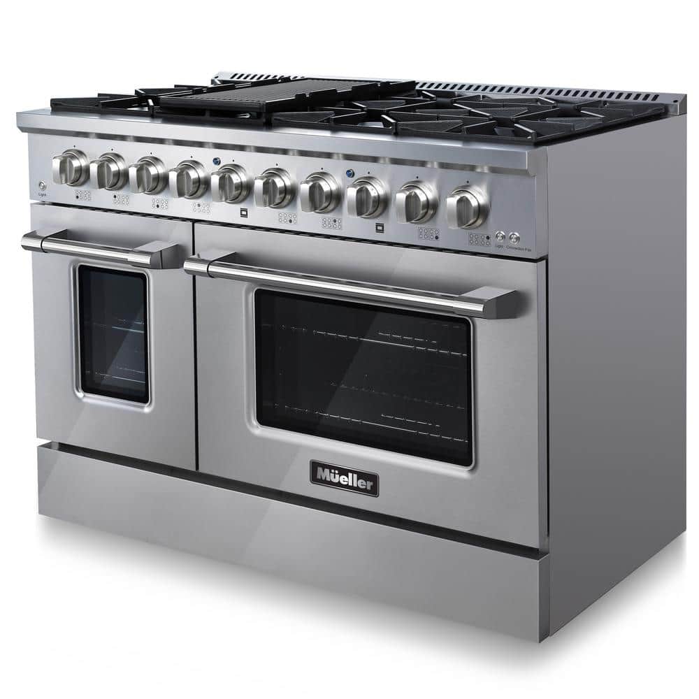 MUELLER 48 in. 6.7 cu. ft. Professional Freestanding Gas Range with 8 Burners, Griddle and Double Oven in Stainless Steel