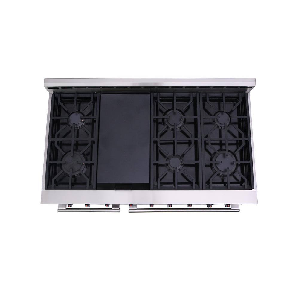 NXR Entree Bundle 48 in. 7.2 cu. ft. Pro-Style Liquid Propane Range Convection Oven Range Hood in Stainless Steel and Gold