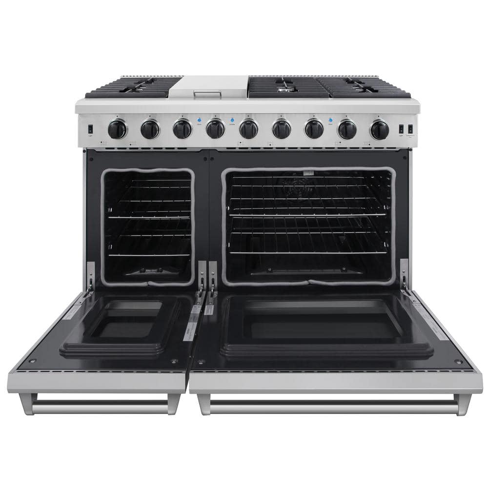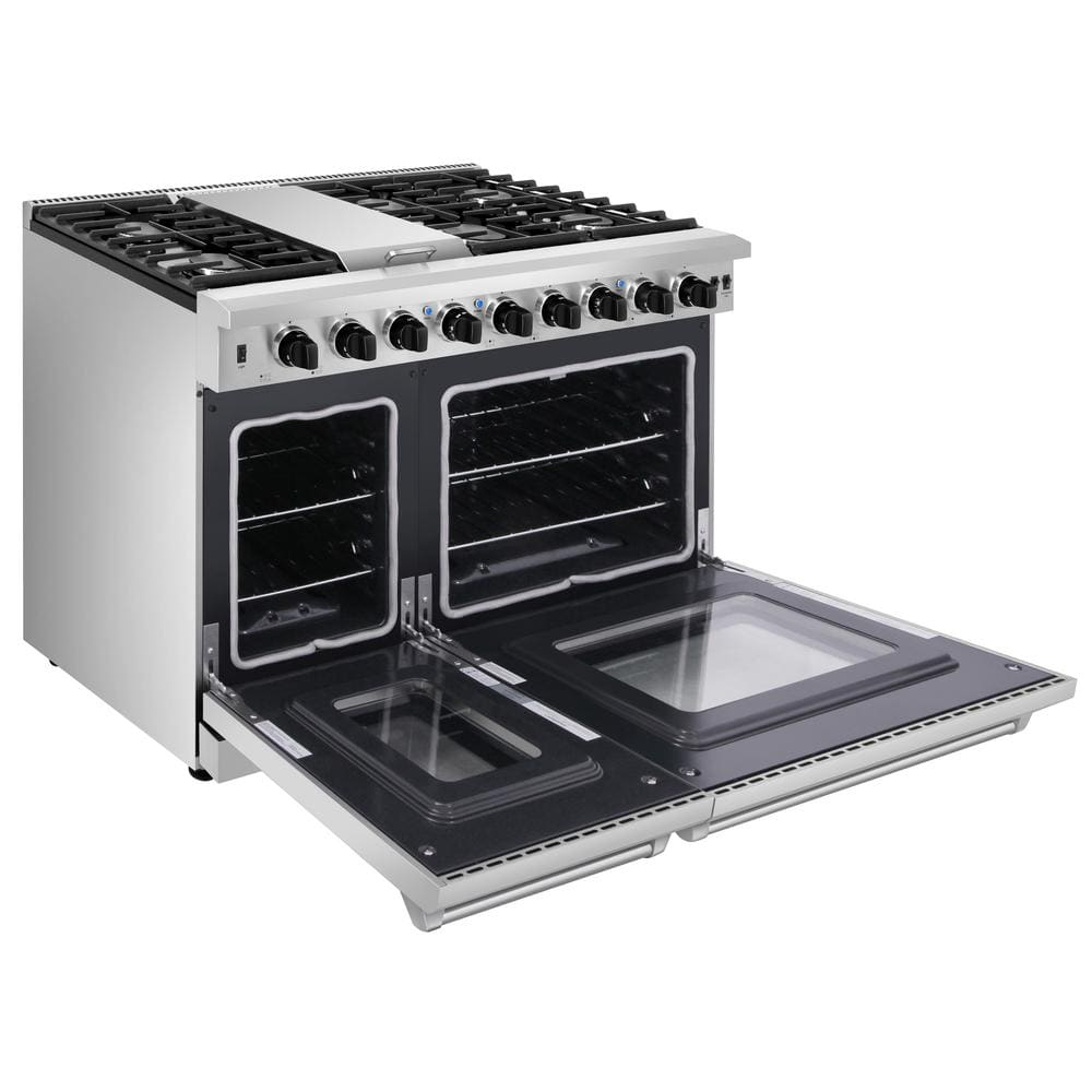 Thor Kitchen 48 in. 6.8 cu. ft. Double Oven Gas Range in Stainless Steel with Griddle and 6-Burners