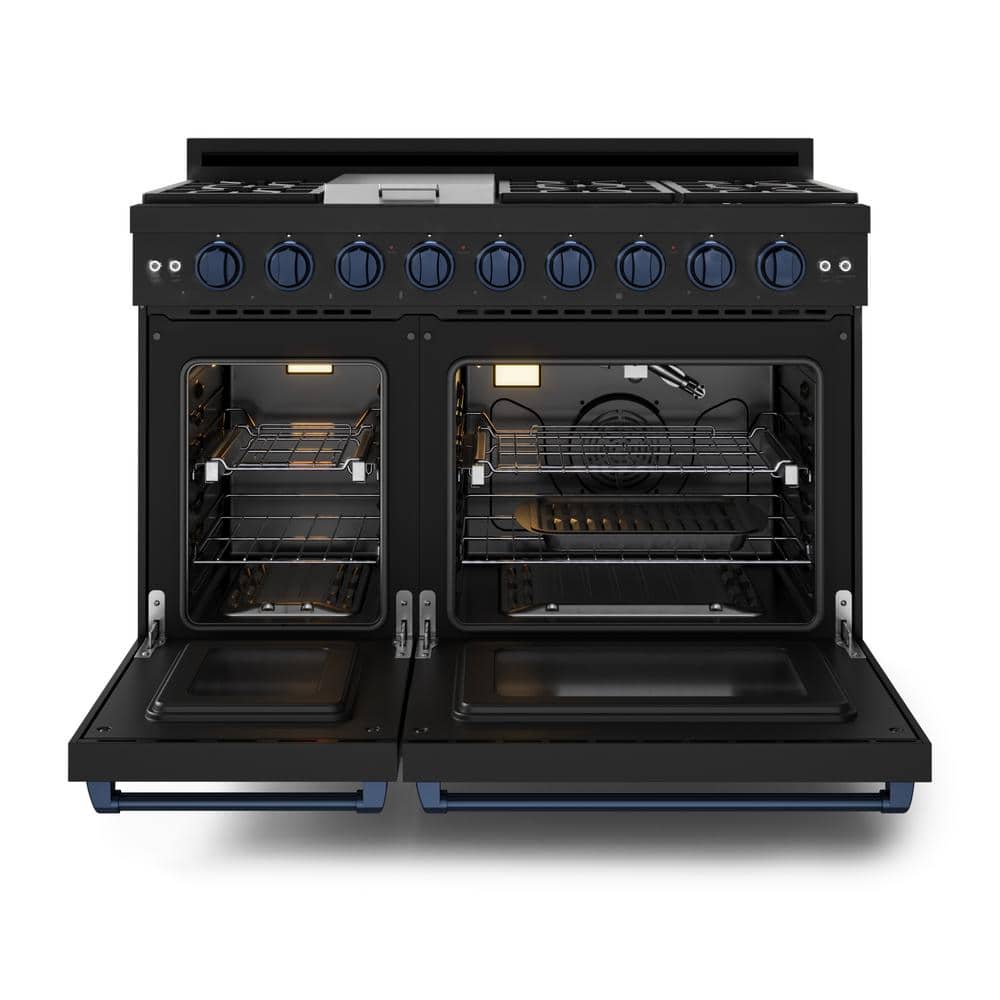 Thor Kitchen Gordon Ramsay Series 48 in. 6-Burners Double Oven Gas Range in Matte Black/Navy Blue with Convection and Grill