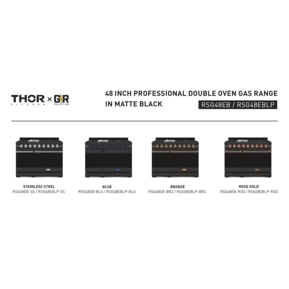 Thor Kitchen Gordon Ramsay Series 48 in. 6-Burners Double Oven Gas Range in Matte Black/Stainless Steel with Convection and Grill