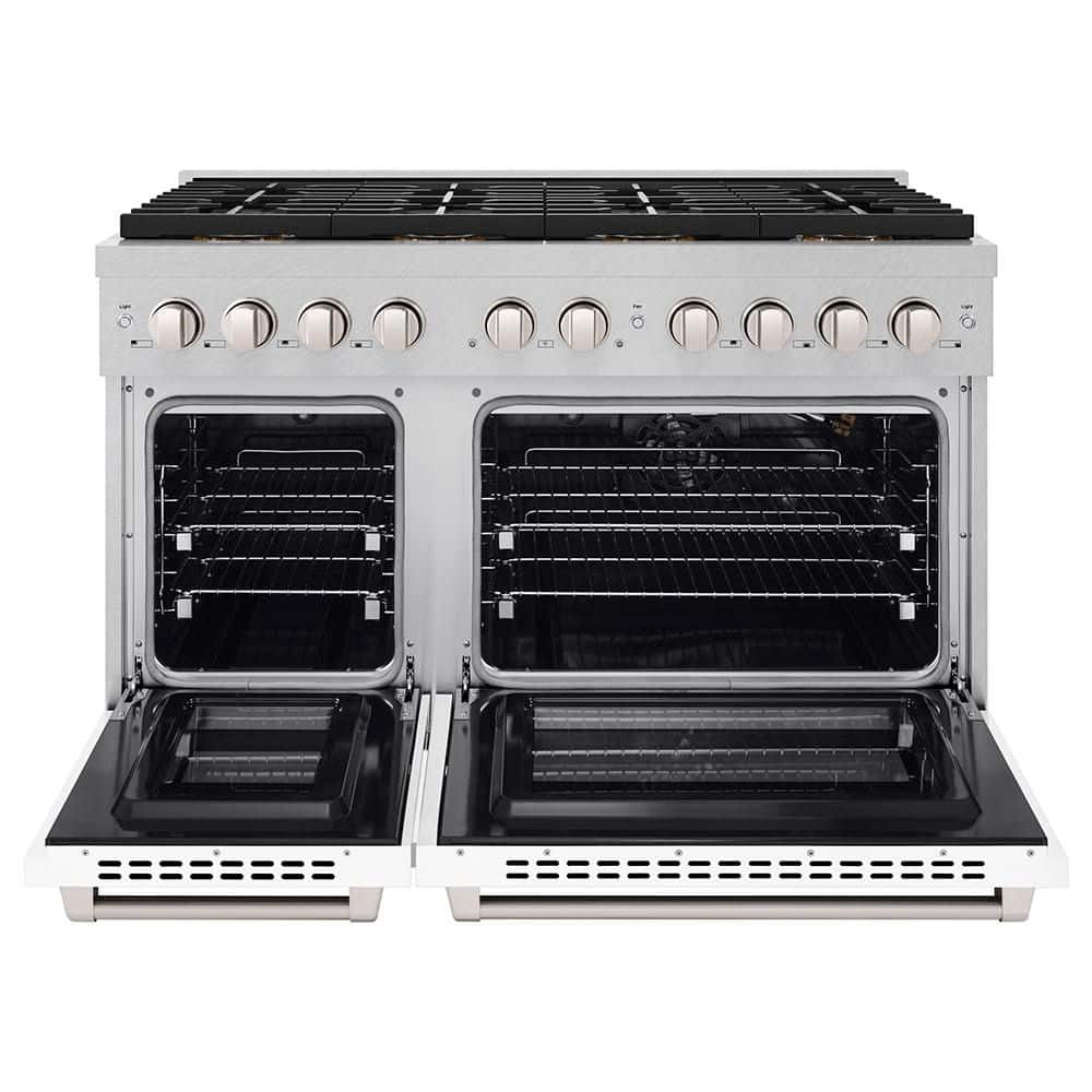 ZLINE Kitchen and Bath 48 in. 6.7 cu. ft. Paramount Gas Range with 8-Burner DuoPro Cooktop and Dual Ovens in Satin Stainless with White Matte