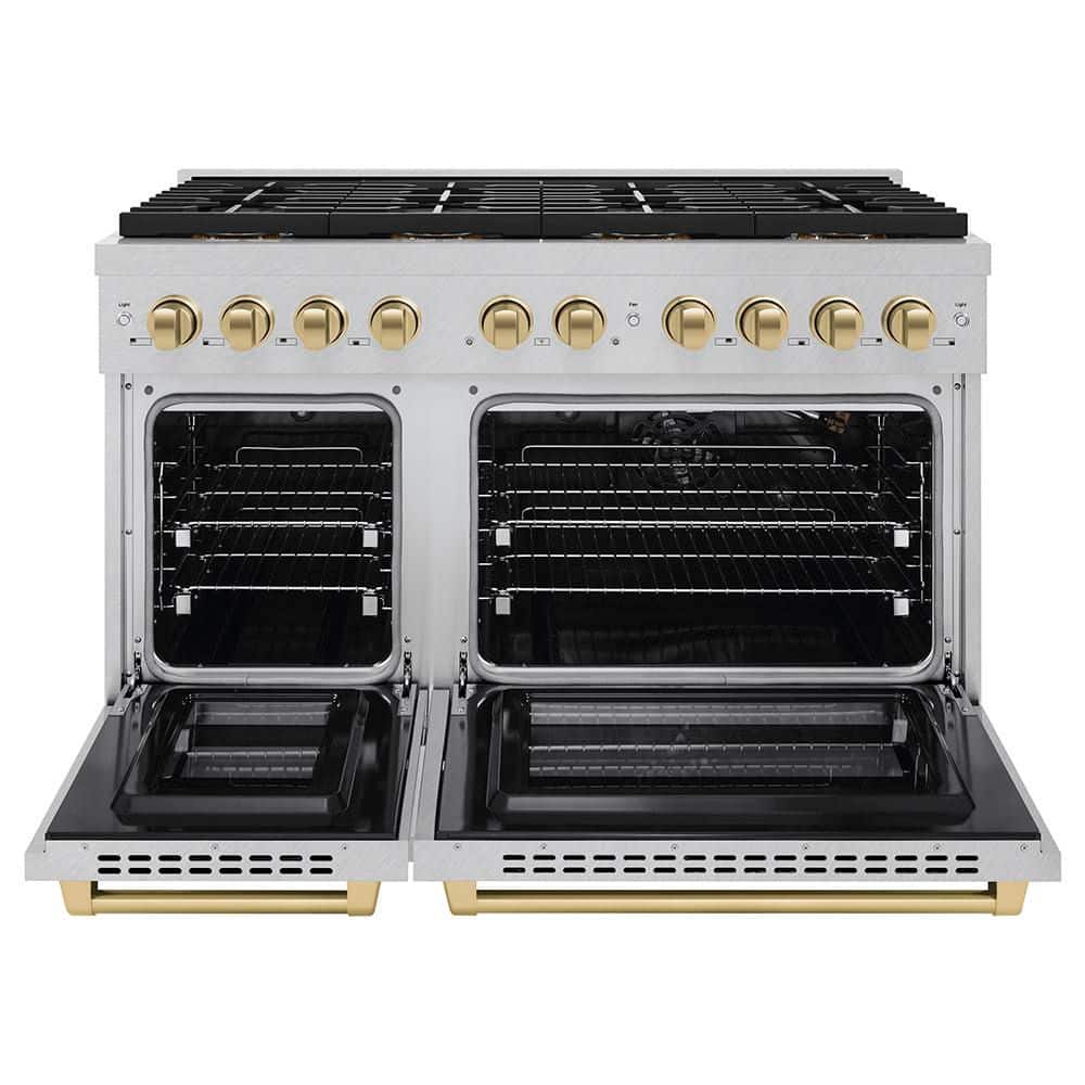 Luxury isn't meant to be left desired-it's meant to be attainable. The ZLINE Autograph Edition 48 in. 6.7 cu. ft. Paramount Gas Range with 8 Burner DuoPro Cooktop and Dual Ovens in Satin Stainless Steel and Champagne Bronze Accents (PSGRSZ-48-CB) features a high-powered gas cooktop with 8 hand-crafted Italian dual-ring brass burners and a versatile gas convection oven allowing you to master every meal. With ZLINE DuoPro, every burner brings the performance you need-wherever you need it.