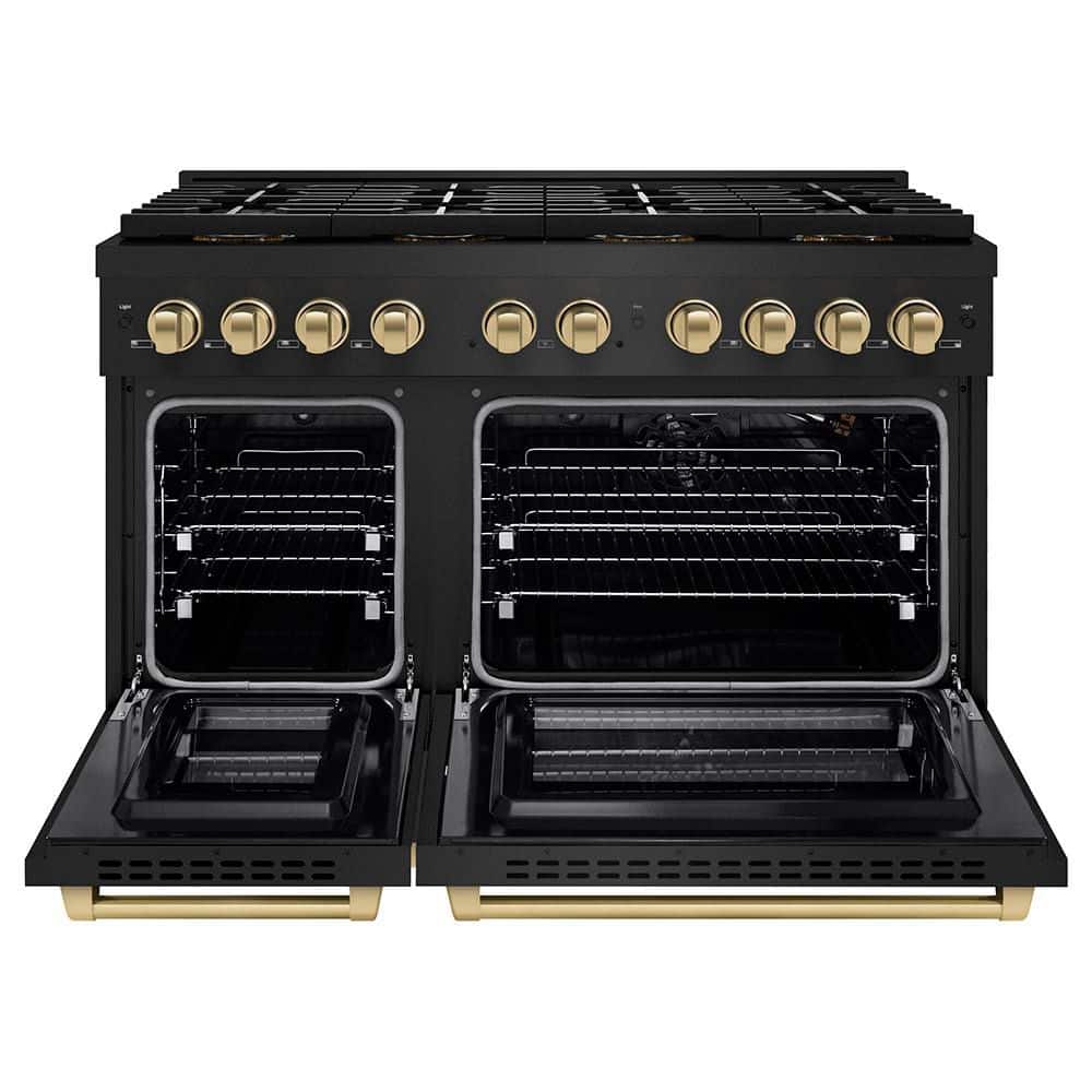 ZLINE Kitchen and Bath Autograph 48 in. 6.7 cu. ft. Paramount Gas Range with 8-Burners and Dual Ovens in Black Stainless and Champagne Bronze
