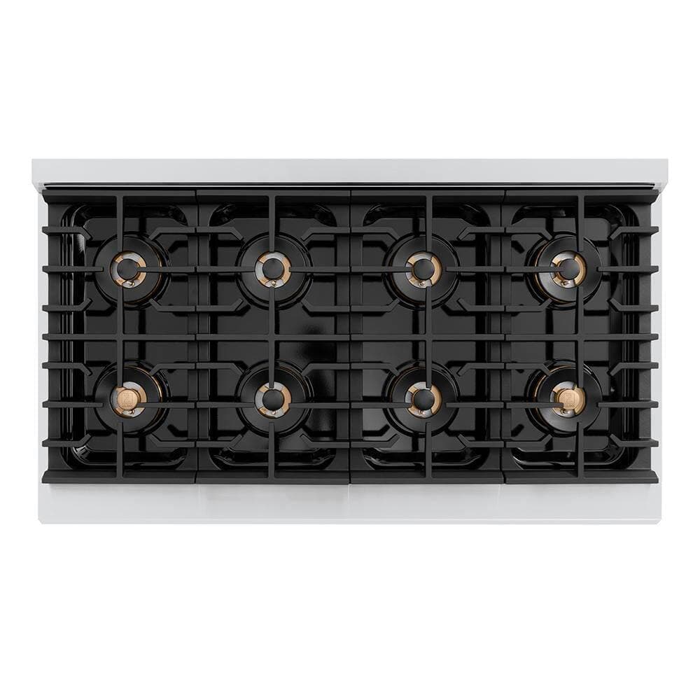 ZLINE Kitchen and Bath Autograph 48 in. 6.7 cu. ft. Paramount Gas Range with 8 Burners and Dual Ovens with Black Matte and Polished Gold