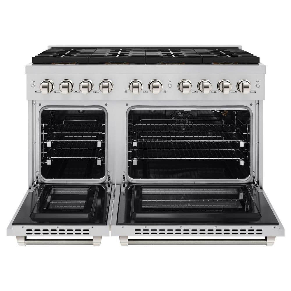 ZLINE Kitchen and Bath Autograph 48 in. Paramount Gas Range with 8 Burner DuoPro Cooktop Gas Oven in Stainless Steel w/ Nickel Helix Hles