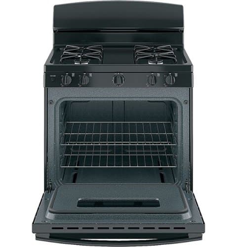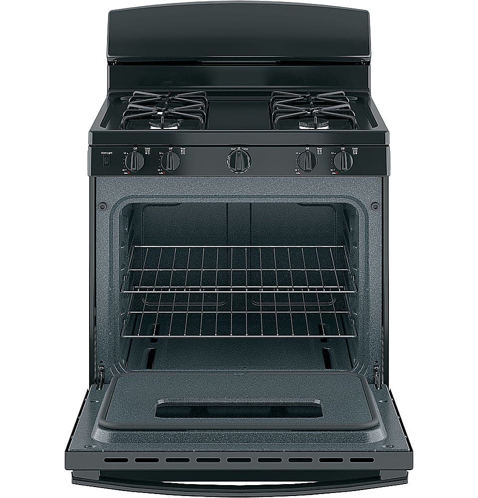 Get dinner on the table quickly with this 30-inch GE gas oven. The 4.8 cu. ft. oven capacity and adjustable racks let you prepare large meals, and the sealed burners contain spills for easy maintenance. This freestanding GE gas oven has front control knobs, so you can adjust temperatures safely without reaching over the cooktop.