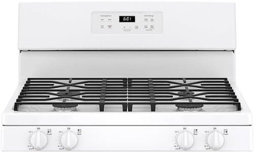 Enjoy cooking and baking with this GE freestanding gas range. Its spacious 4.8 cu. ft. capacity and two oven racks with six positions can hold many food items. The precise simmer burner ensures fast overall cook times.