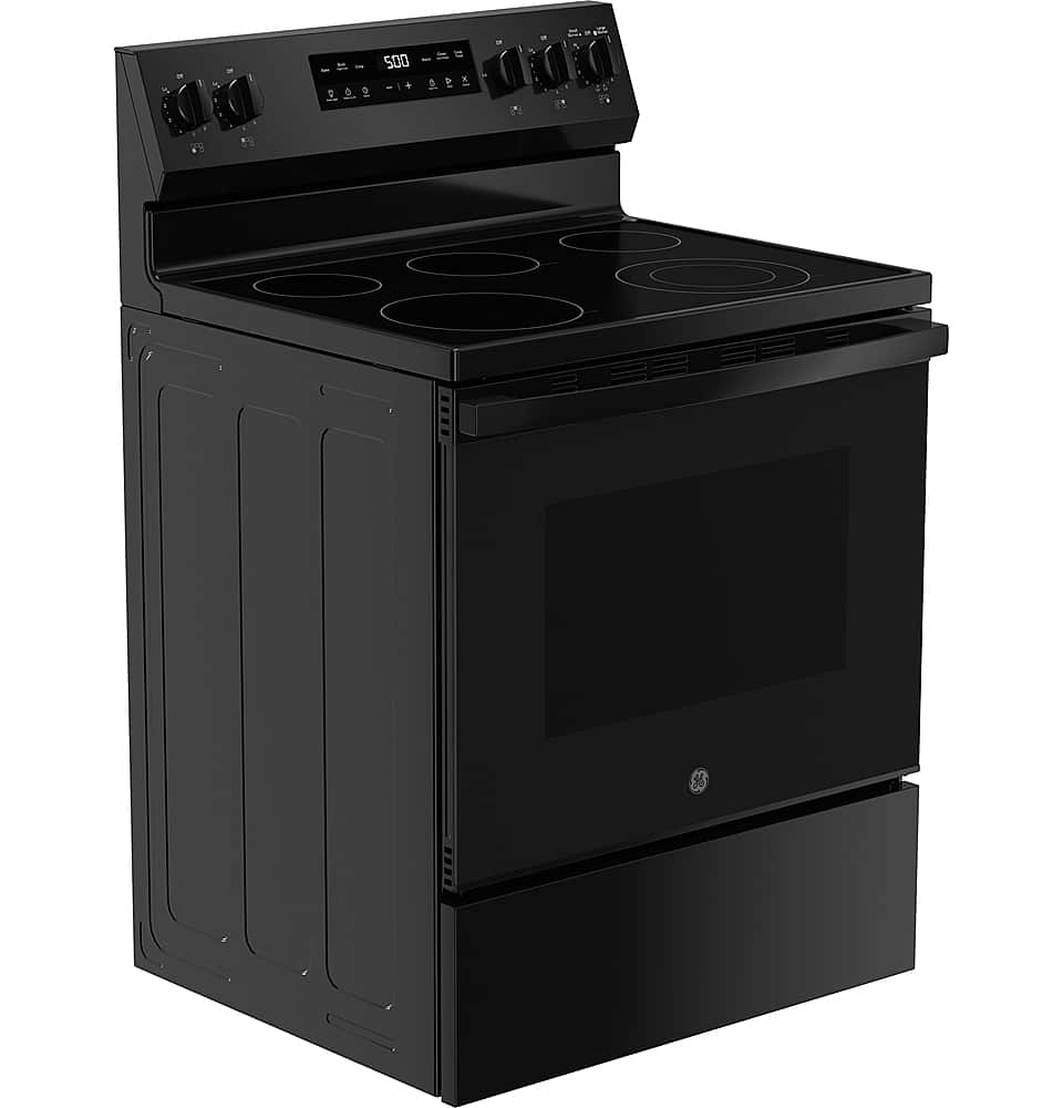 GE - 5.3 Cu. Ft. Freestanding Electric Range with Self-Clean and Steam Cleaning Option and Crisp Mode - Black