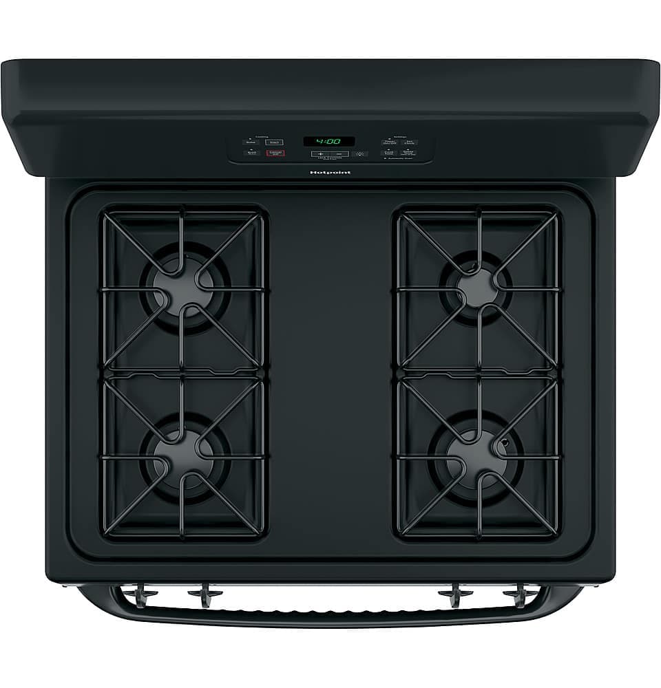 Prepare dinner quickly with this 30-inch Hotpoint gas range. It has four sealed burners that distribute heat evenly, and the 4.8 cu. ft. oven capacity ensures sufficient space for casseroles, roasts and pies. The front control dials of this freestanding Hotpoint gas range let you make convenient temperature adjustments safely.