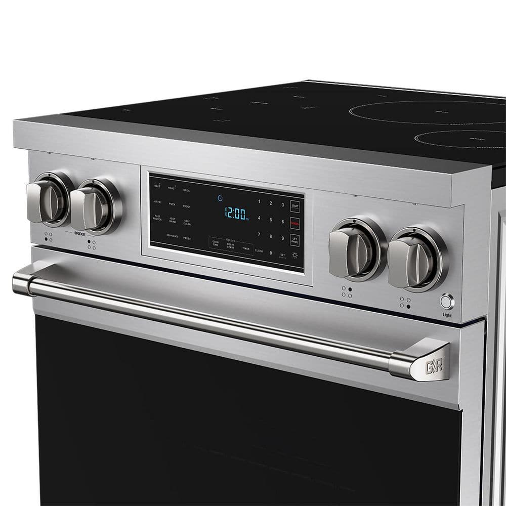 The 30 in. PRO Style Smooth Glass Top Induction Range in Stainless Steel combines professional-grade performance with sleek, modern design. Featuring a powerful induction cooktop, spacious true convection oven, and multiple cooking modes, it's built for home chefs who demand precision, versatility, and style in every meal. The smooth glass surface offers easy cleanup, while advanced oven functions-from air fry to dehydrate-ensure you can handle any recipe with confidence.