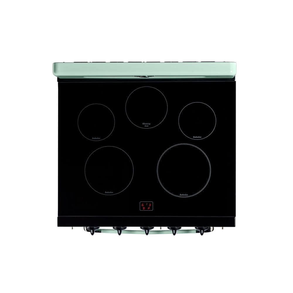 Unique Appliances Classic Retro 30 in. 5 Burner Element Freestanding Induction Range with Convection Oven and Air Fry in Summer Mint Green