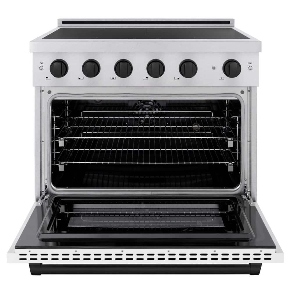 ZLINE Kitchen and Bath 36 in. 5.2 cu. ft. Induction Range with 5 Element Cooktop in Satin Stainless with White Matte and Matte Black Accents