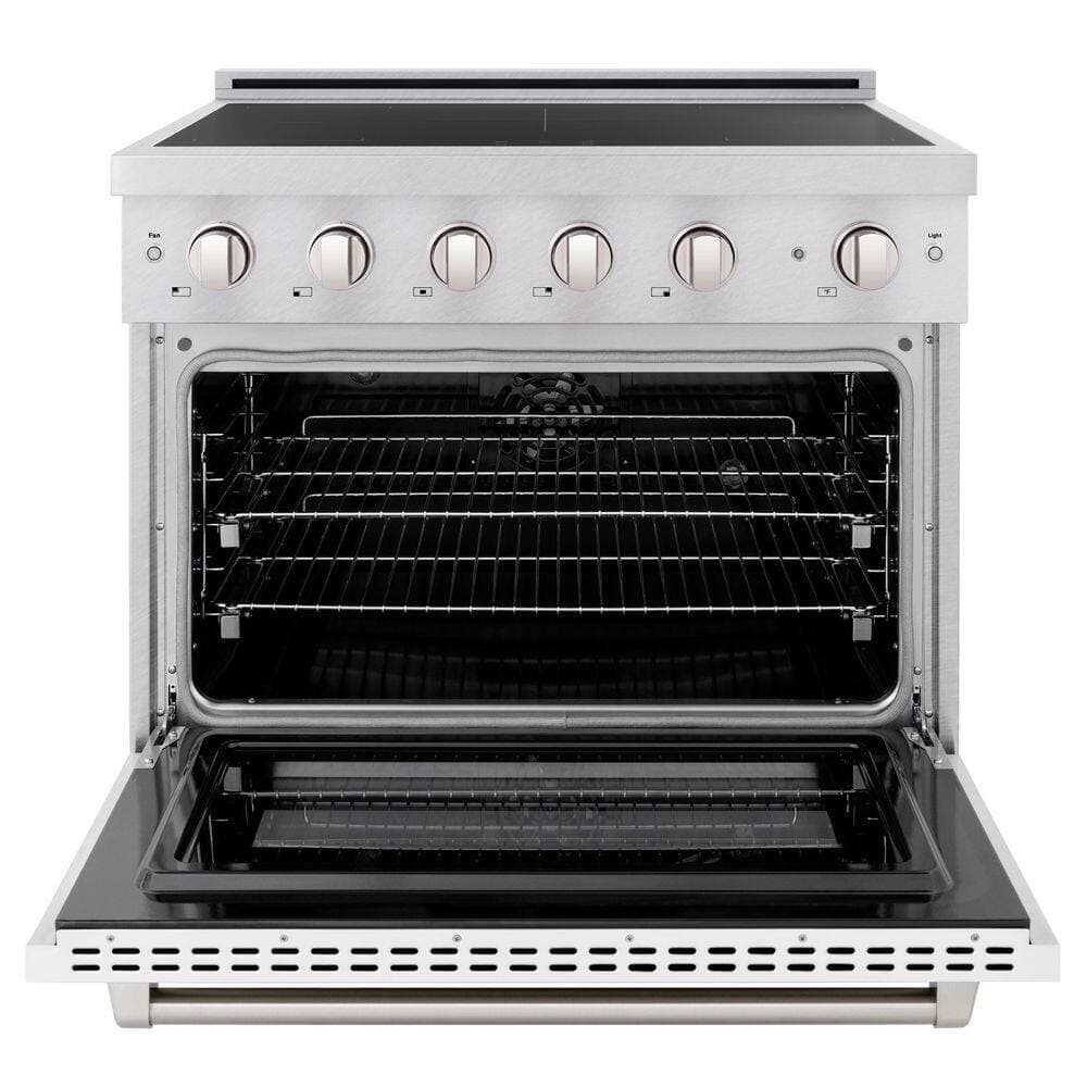 ZLINE Kitchen and Bath 36 in. 5.2 cu. ft. Paramount Induction Range with 5 Element Cooktop in Satin Stainless Steel with White Matte Door