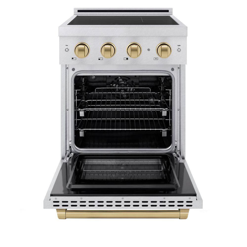 ZLINE Kitchen and Bath Autograph 24 in. 3.2 cu. ft. Paramount Induction Range with 3 Element Cooktop in Satin Stainless Steel with Gold Accents