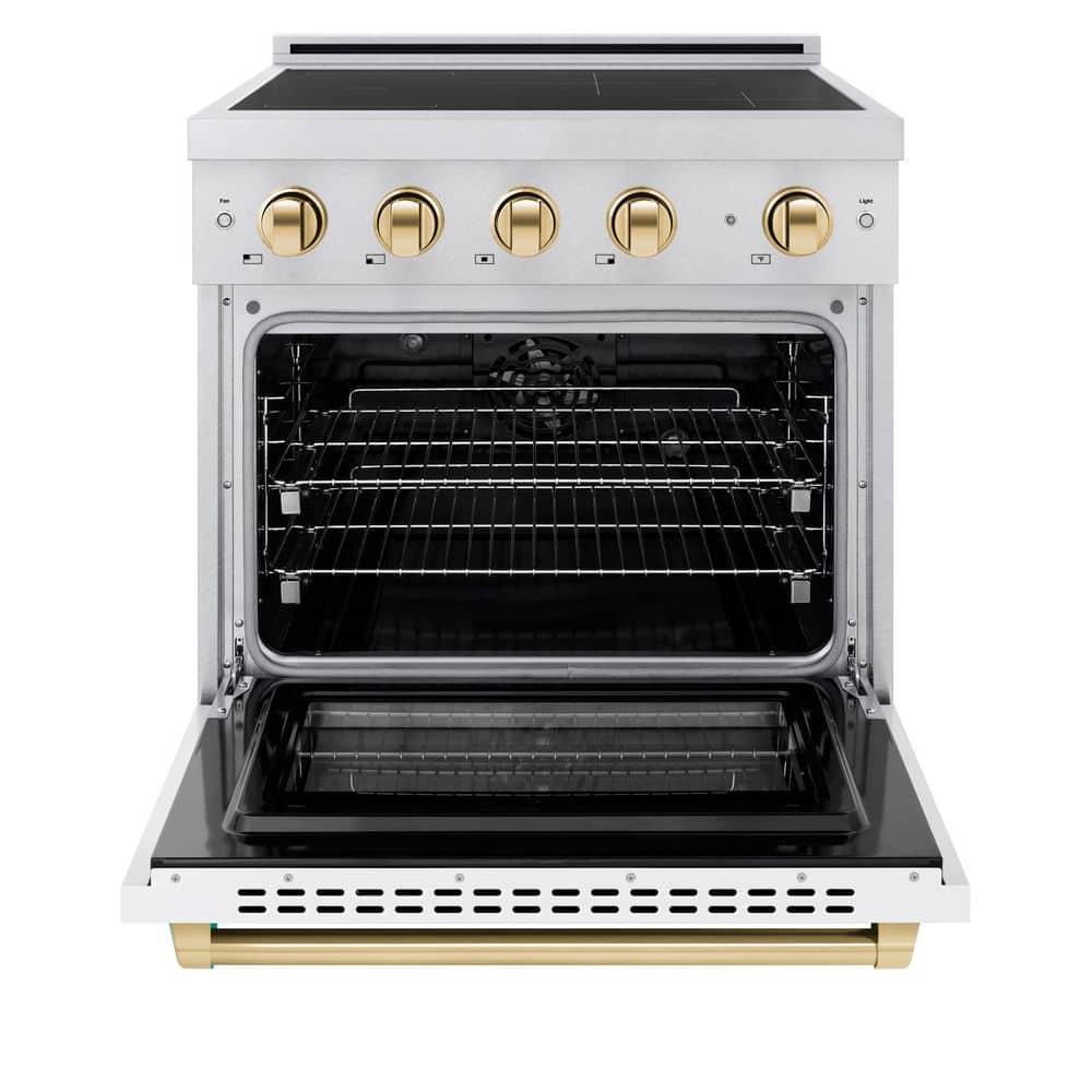 ZLINE Kitchen and Bath Autograph 30 in. 4.2 cu. ft. Induction Range with 4 Element Cooktop in Satin Stainless with White and Gold Accents
