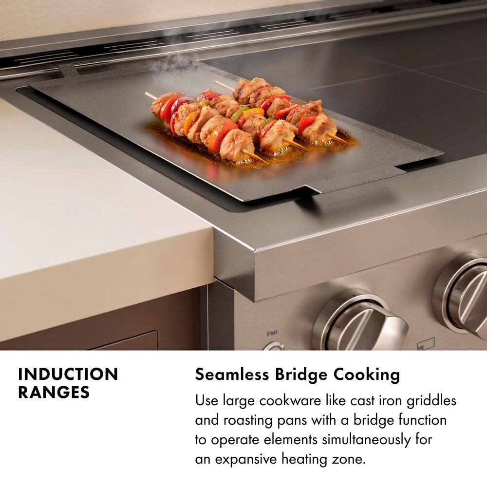 Luxury isn’t meant to be left desired—it’s meant to be attainable. The ZLINE Autograph Edition 30 in. 4.2 cu. ft. Paramount Induction Range with 4 Element Cooktop and Electric Convection Oven in Satin Stainless Steel with White Matte Door and Polished Gold Accents (SINRSZ-WM-30-G) combines the versatility of a nanotechnology-reinforced anti-scratch cooktop with anti-glare coating, an electric convection oven with digital thermostat technology, and a Horizon oven door window design allowing you to master every meal. With a modern, timeless style and refined functionality, ZLINE Paramount Induction Ranges are masterfully crafted to deliver an elevated culinary experience.