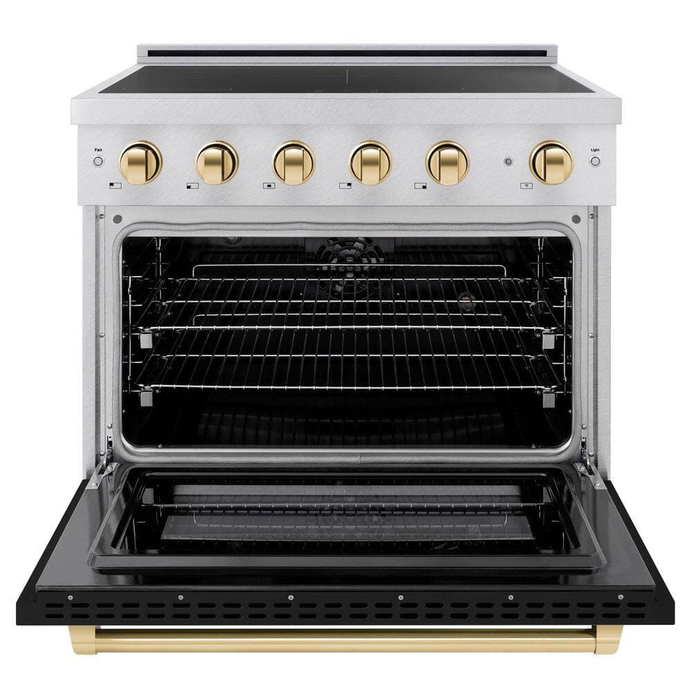 ZLINE Kitchen and Bath 36 in. 5.2 cu. ft. Induction Range with 5 Element Cooktop in Satin Stainless with Black Matte and Champagne Accents