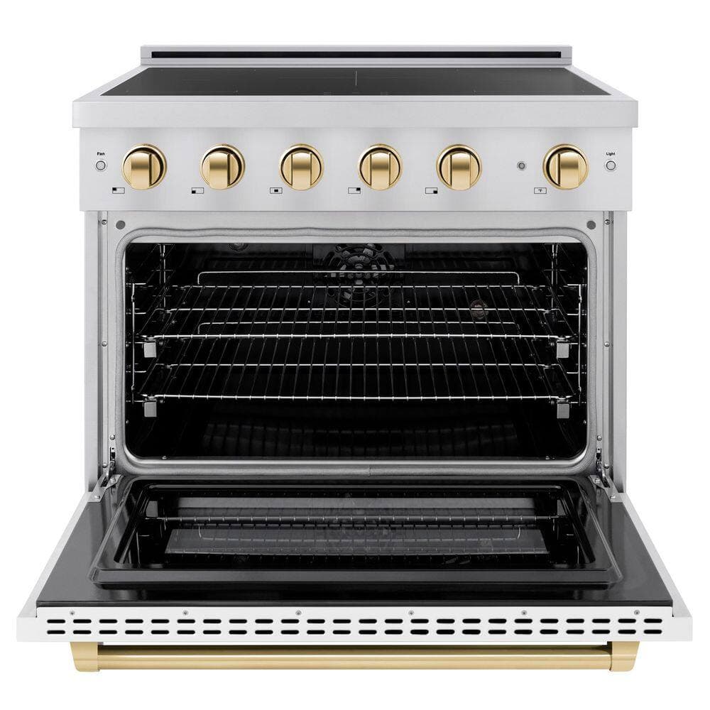 ZLINE Kitchen and Bath Autograph 36 in. 5.2 cu. ft. Induction Range with 5 Element Cooktop in Stainless Steel with White Matte and Gold Accents
