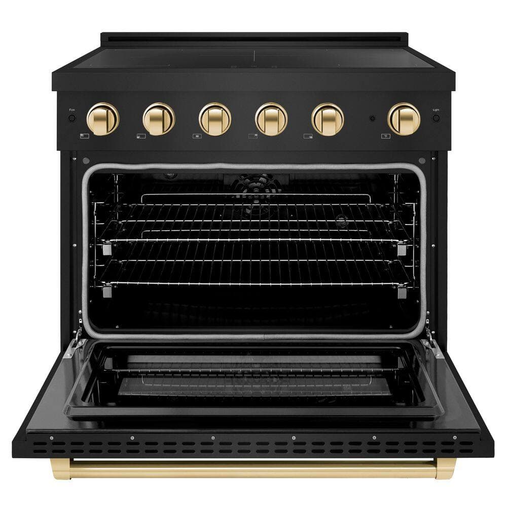 ZLINE Kitchen and Bath 36 in. 5.2 cu. ft. Induction Range with 5 Element Cooktop in Satin Stainless with Black Matte and Champagne Accents