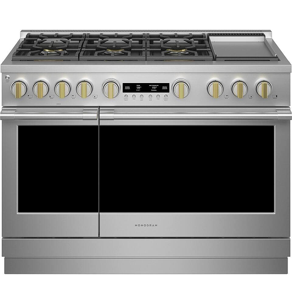 Monogram - 8.9 Cu. Ft. Freestanding Double Oven Gas Convection Range with Steam Cleaning and 6 Versatile Gas Burners - Stainless Steel