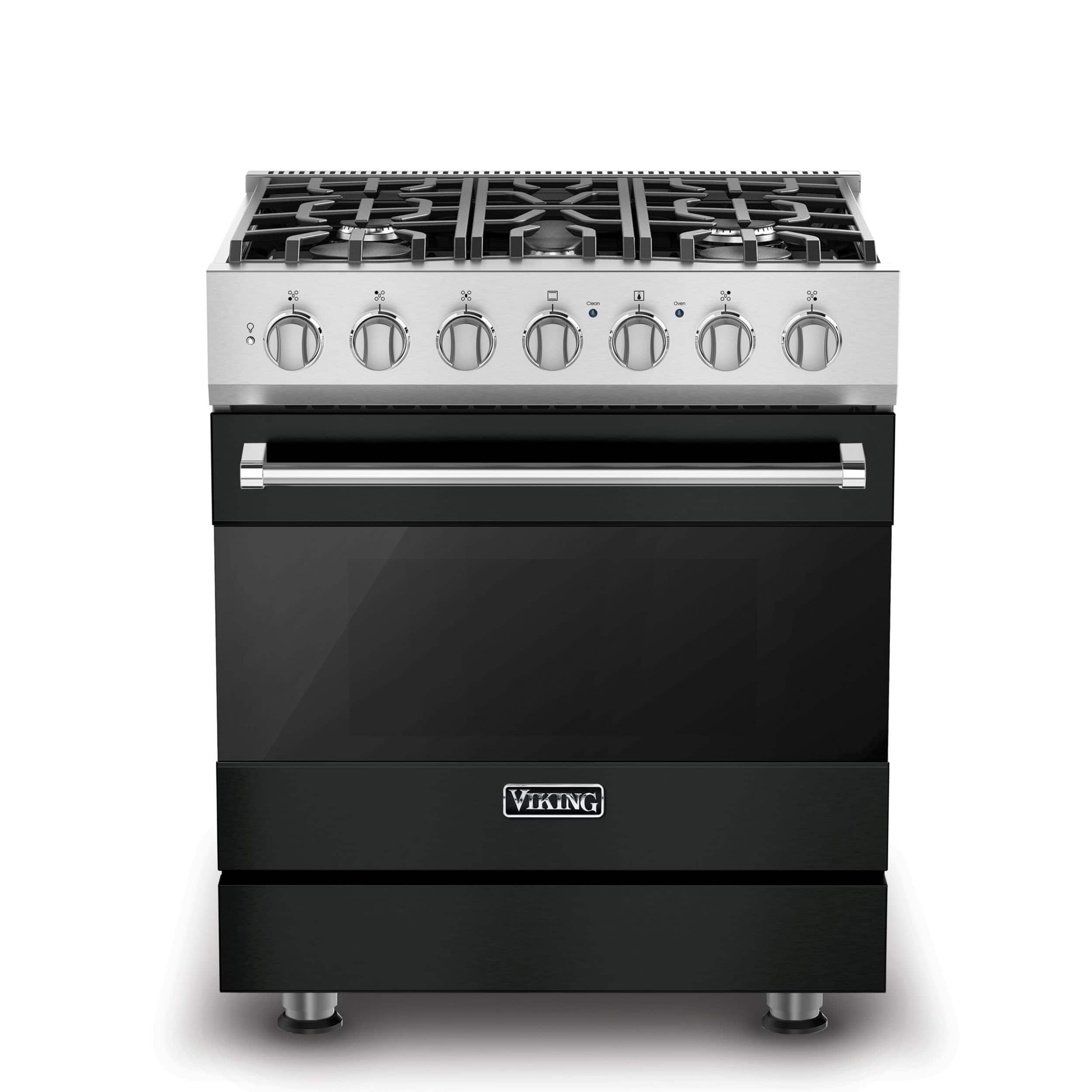 Complete your kitchen update with this 30-inch Viking range. The oven delivers 18,000 BTUs of power for efficient and even heating, and it has 4.7 cu. ft. of space for preparing family meals. This freestanding dual-fuel Viking range has heavy-duty continuous grates that let pots and pans sit flat for even cooking.