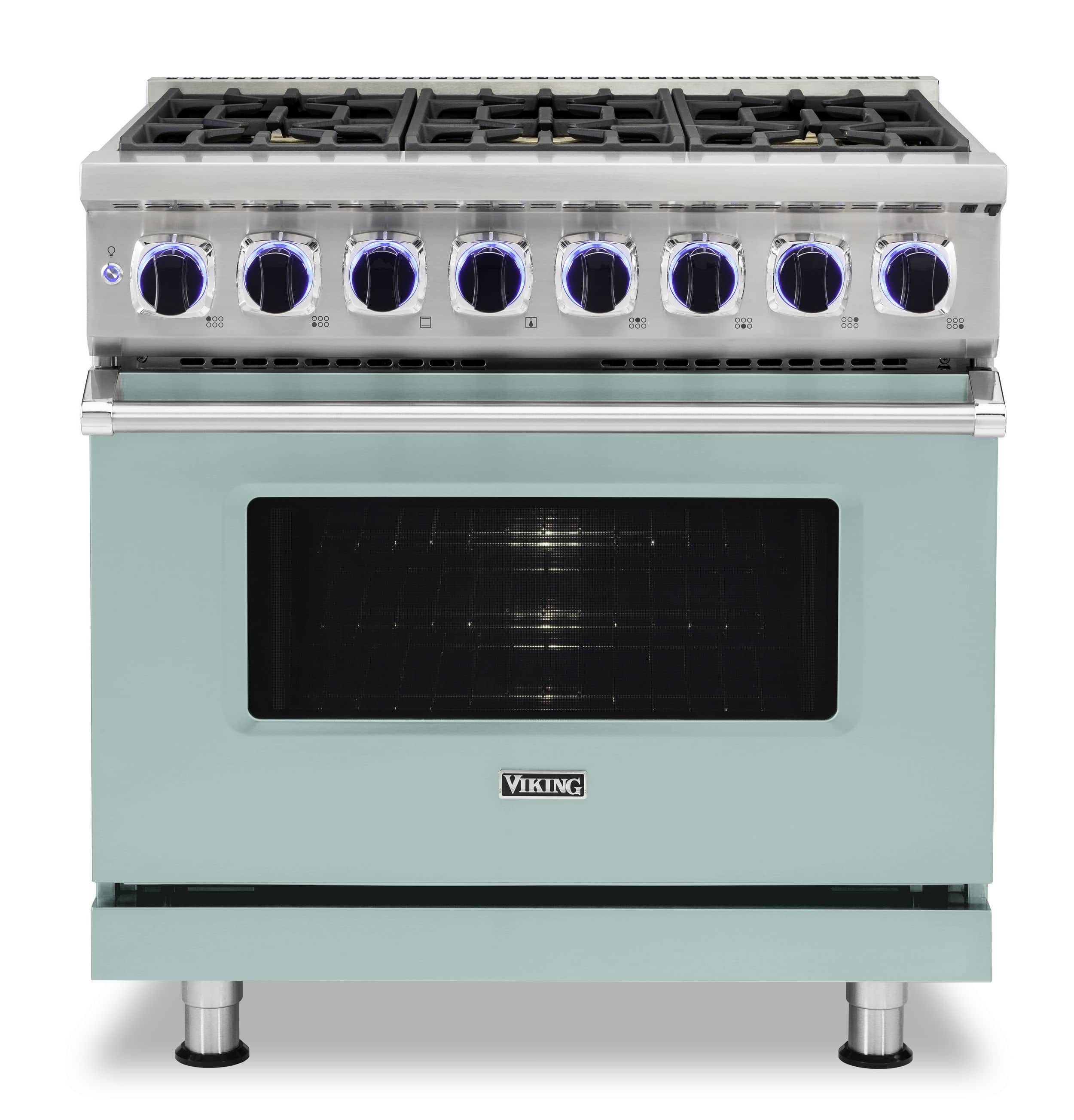 Delight in convenient cooking with this 36-inch Viking 7 series dual-fuel range. Six burners with different BTU outputs let you prepare different dishes at ideal temperatures, while the 5.6-cu. ft. oven capacity lets you prepare enough food for your entire family. This Viking 7 series dual-fuel range features BlackChrome knobs with CoolLit LED backlighting for smooth operation.