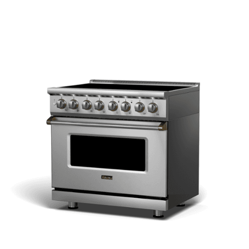 The Viking 5-Series induction self-cleaning range touts one of the largest oven cavities in the industry with 8 different cooking modes and 6 oven rack positions. The ceramic glass cooktop surface is both durable and easy to keep clean as induction keeps the cooking surface substantially cooler than a traditional all electric smoothtop.