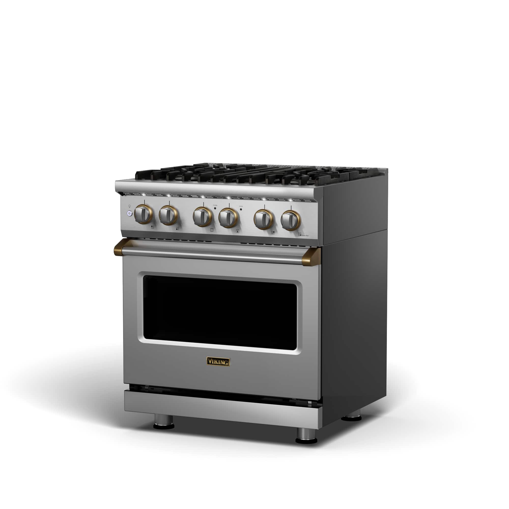 Viking - 5-Series 4.7 Cu. Ft. Self-Cleaning Freestanding Dual Fuel Convection Range - Stainless with Brushed Brass Accents