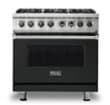 Prepare delicious meals at home with this 36-inch Viking dual fuel range. Its infrared broiler lets you sear meat to lock in juices, and its two-speed convection system delivers even heating within the 5.6 cu. ft. oven. This stainless steel Viking dual fuel range has six sealed burners that provide consistent ignition thanks to its SureSpark system.
