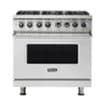 Prepare delicious meals at home with this 36-inch Viking dual fuel range. Its infrared broiler lets you sear meat to lock in juices, and its two-speed convection system delivers even heating within the 5.6 cu. ft. oven. This stainless steel Viking dual fuel range has six sealed burners that provide consistent ignition thanks to its SureSpark system.