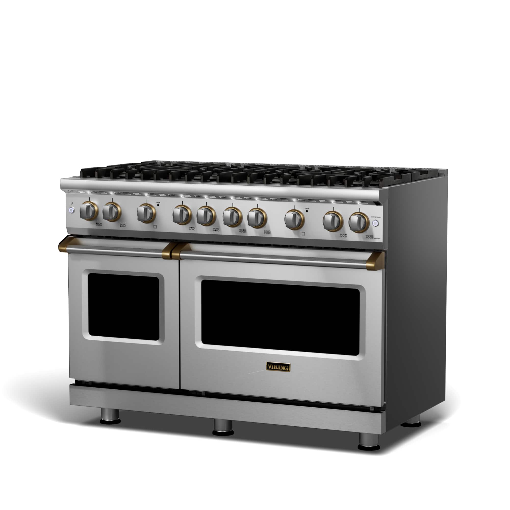 Viking - 5-Series Dual Fuel Self-Clean 48"W Sealed Burner Range - Stainless with Brushed Brass Accents