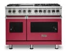 Make delicious meals with this 48-inch Viking Professional dual fuel range. Its six VariSimmer burners include one with 18,500 BTUs of power for recipes that require intense heat, and its 12-inch griddle is thermostatically controlled for even cooking. Bake desserts while roasting a main entree in the 7.3 cu. ft. double convection oven of this Viking Professional dual fuel range.