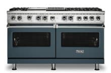 Whip up meals like a professional with this 60-inch Viking dual fuel range. The six sealed burners, griddle and grill let you create anything from pancakes to delicate sauces, and the VariSimmer setting ensures accurate low-temperature cooking. The electric self-cleaning oven on this Viking dual fuel range provides even heating for consistent results.