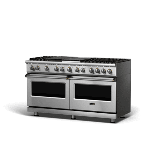 Whip up meals like a professional with this 60-inch Viking dual fuel range. The six sealed burners, griddle and grill let you create anything from pancakes to delicate sauces, and the VariSimmer setting ensures accurate low-temperature cooking. The electric self-cleaning oven on this Viking dual fuel range provides even heating for consistent results.
