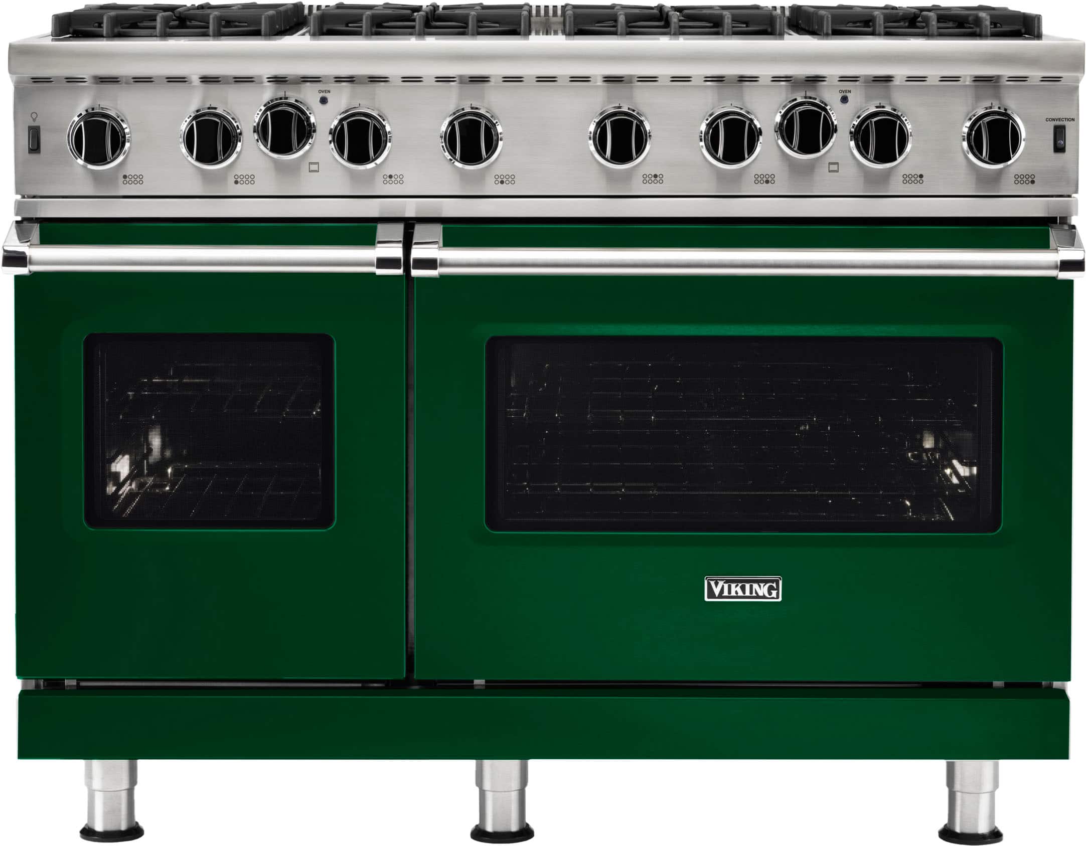 The Viking 5-Series open-burner all gas range touts dual large capacity ovens with 6 different cooking modes and 6 oven rack positions. The ovens are heated with a 30,000 BTU U-shaped burner for maximum coverage in the oven cavity, for faster pre-heat and more even cooking. The oversized infrared Broiler provides intense searing heat for broiling applications.