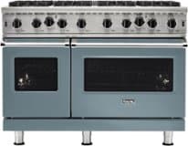 The Viking 5-Series open-burner all gas range touts dual large capacity ovens with 6 different cooking modes and 6 oven rack positions. The ovens are heated with a 30,000 BTU U-shaped burner for maximum coverage in the oven cavity, for faster pre-heat and more even cooking. The oversized infrared Broiler provides intense searing heat for broiling applications.