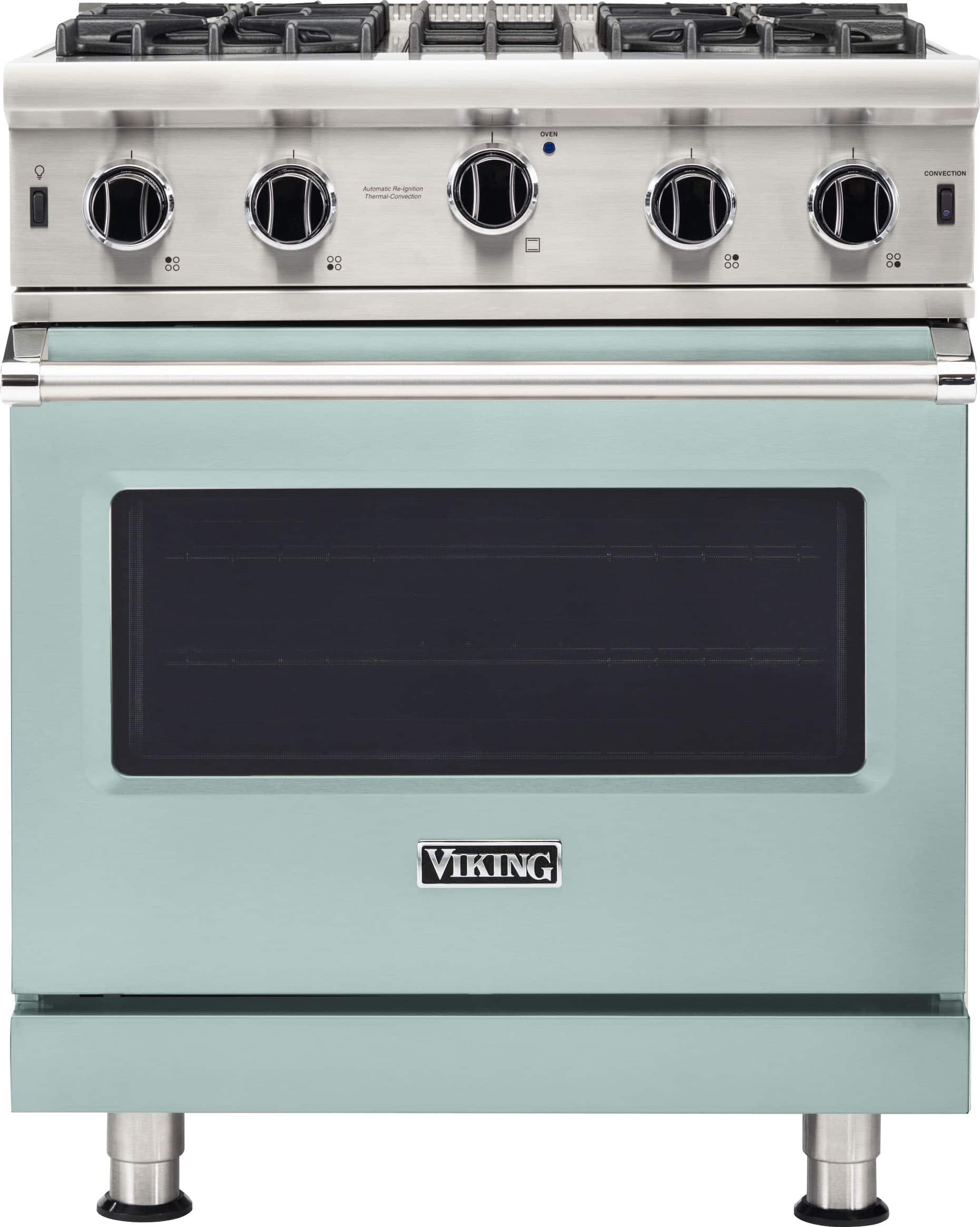 The Viking 5-Series open-burner all gas range touts one of the largest oven cavities in the industry with 6 different cooking modes and 6 oven rack positions. The oven is heated with a 30,000 BTU U-shaped burner for maximum coverage in the oven cavity, for faster pre-heat and more even cooking. The oversized infrared Broiler provides intense searing heat for broiling applications.