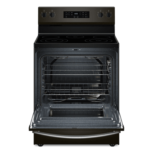 Make the most of your time in the kitchen with this Whirlpool 30 inch electric range, featuring dual electric elements and No Preheat Mode. This 5.3 cu ft conventional oven with Broil helps you add a toasty twist or melty magic to family classics, and features a built-in temperature sensor to help the oven Bake evenly. Plus, boil 40% faster* with two FlexHeat™ Dual Radiant Elements. And use just water to loosen light spills in the oven with Steam Clean, then simply wipe away. *When comparing the 9" element to the 6" element on the same unit.