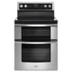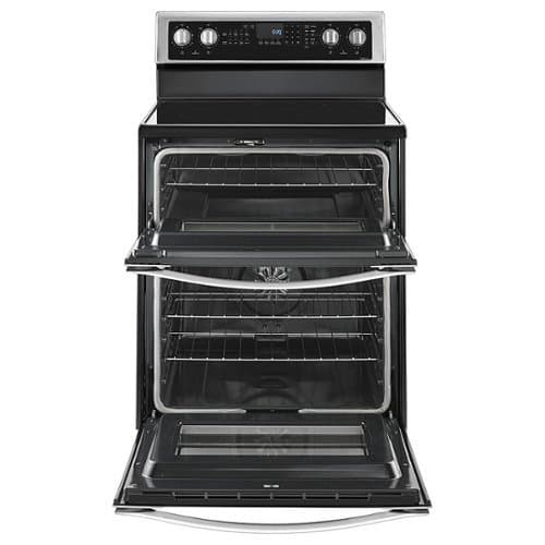 Expand your cooking possibilities with this Whirlpool double-oven range. It uses convection technology for faster oven-to-table times, and it has a frozen food setting that doesn't require preheating. Self-cleaning technology cleans the ovens in as little as 50 minutes, so you can spend more time creating fabulous meals with your Whirlpool double-oven range.