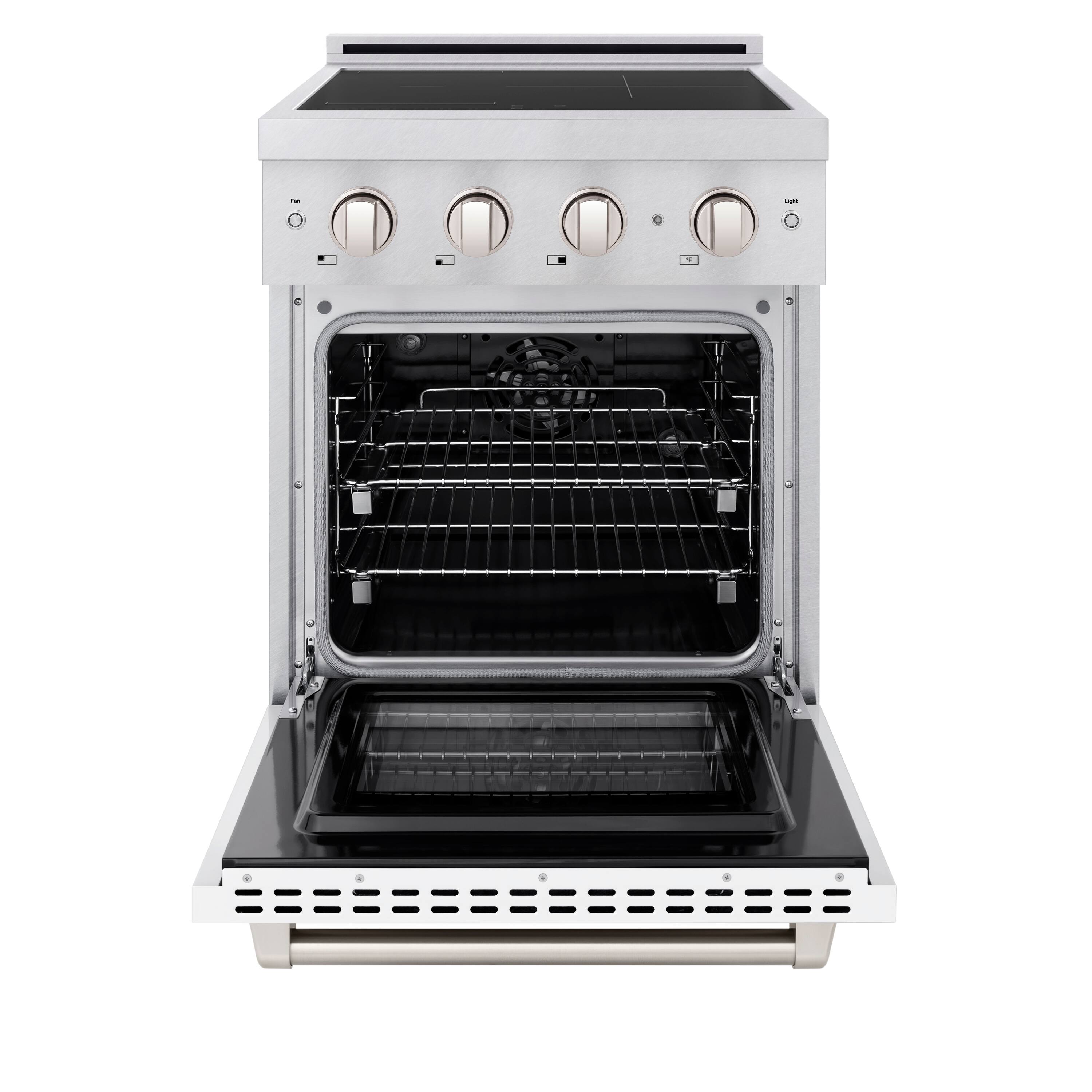 ZLINE - 24 in. 3.2 cu. ft. Paramount Freestanding Induction Range with 3 Burners and Electric Oven in Satin Steel w/ White Door - White Matte