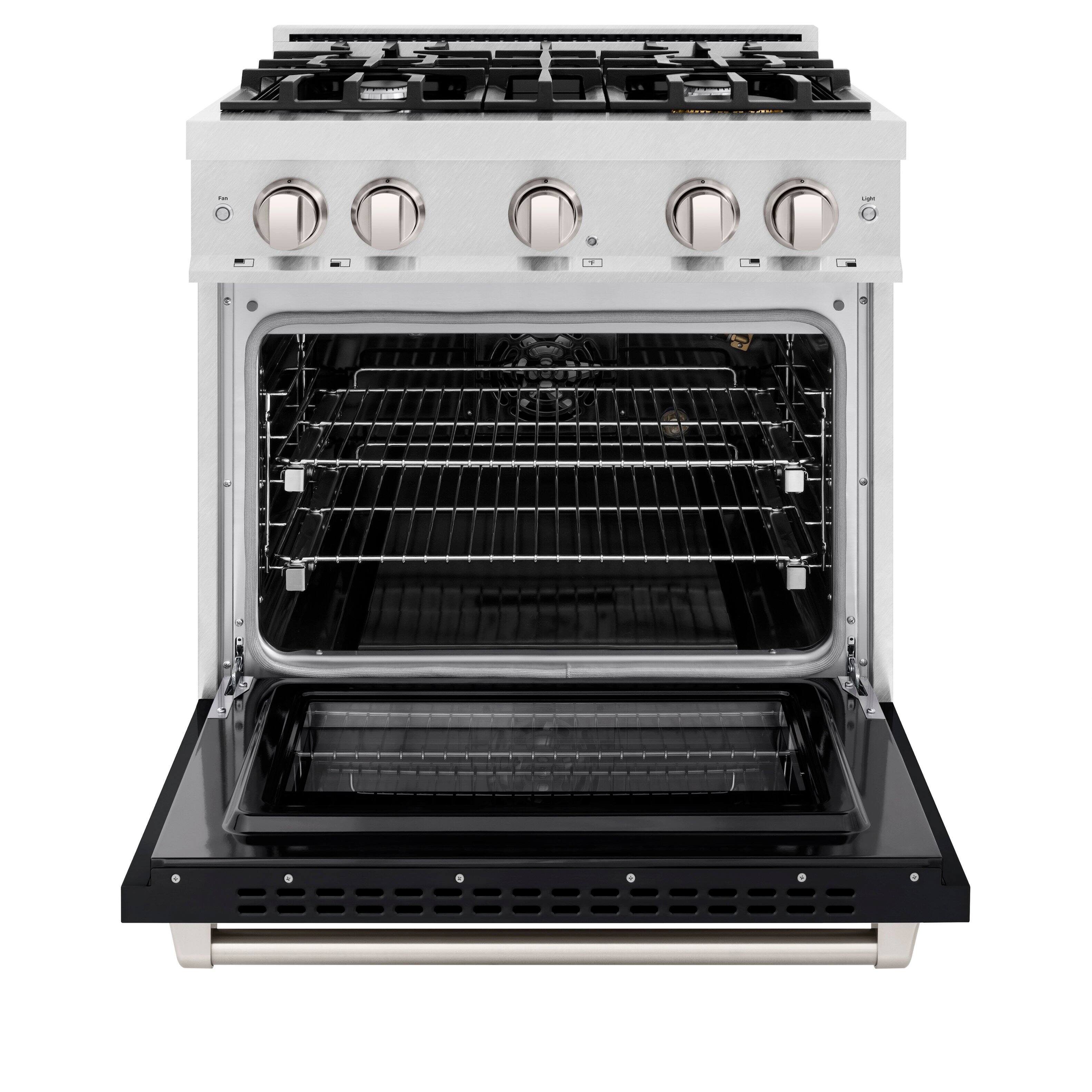 ZLINE - 30 in. 4.2 cu. ft. Freestanding Select Satin Steel Gas Range w/ 4 Burners & Convection Oven w/ Black Door - Satin Stainless Steel