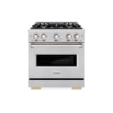 ZLINE - 30 in. Classic Dual Fuel Satin Steel Range w/ 4 Brass Burners & Convection Oven (CDRS-BR-30) - Stainless Steel