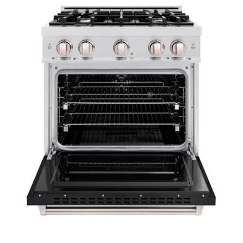 Luxury isn’t meant to be left desired — it’s meant to be attainable. The ZLINE 30 in. 4.2 cu. ft. Classic Dual Fuel Range with 4 Burner Gas Cooktop and Electric Convection Oven in Satin Stainless Steel with Black Matte Door (CDRS-BLM-30) combines the elegance of a hand-finished porcelain gas cooktop with 4 Italian-made auto-reignition burners, an electric convection oven with an energy-efficient cooling fan to ensure quiet operation, and a beautiful black matte door with a Landscape window design allowing you to master every meal. With a modern, timeless style and refined functionality, ZLINE Classic Dual Fuel Ranges are masterfully crafted to deliver an elevated culinary experience.