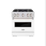ZLINE - 30 in. Classic Satin Steel Gas Range with 4 Burners and Convection Oven (CGRS-WM-30) - Stain Steel/White Matte