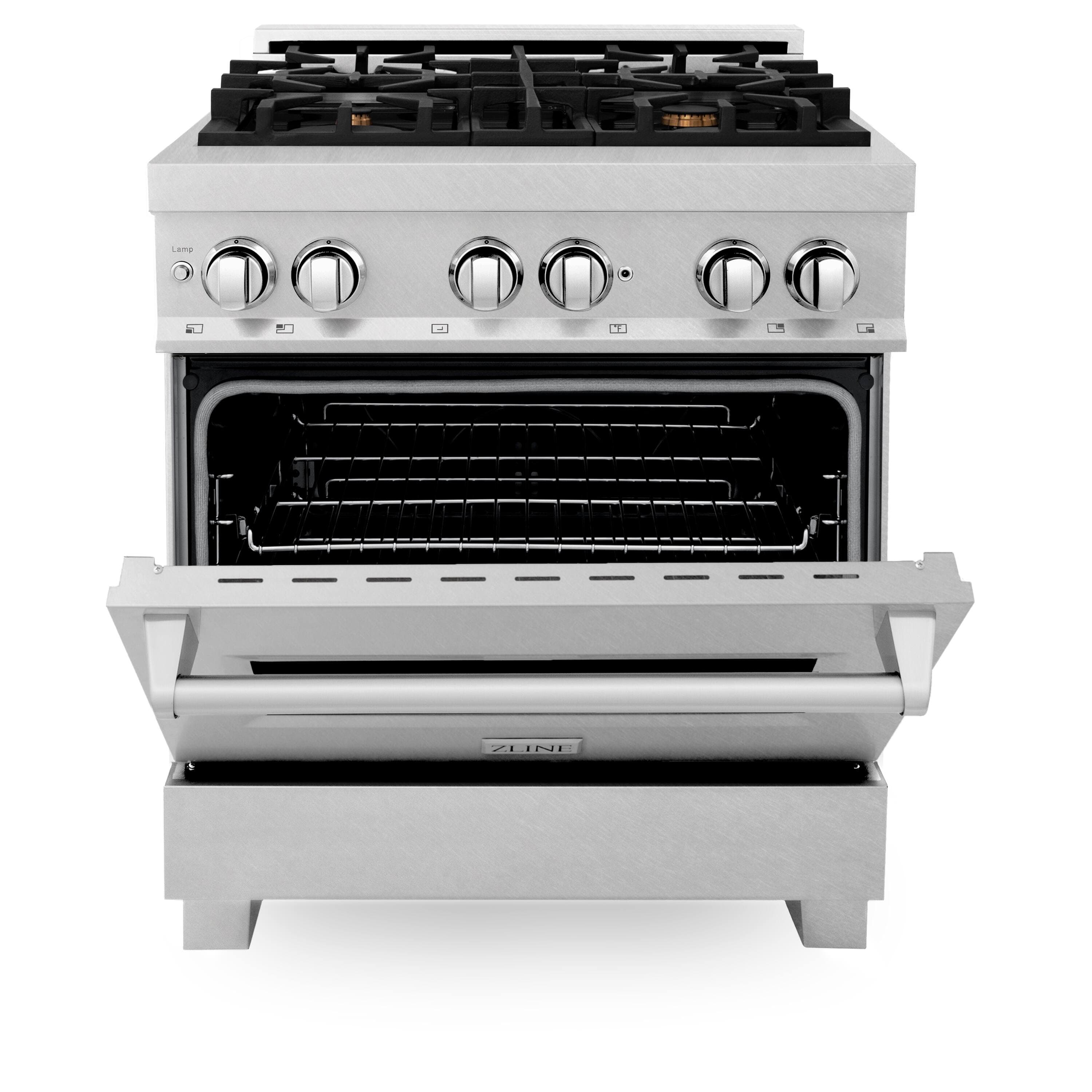ZLINE - 30 in. Legacy Dual Fuel Range with 4 Brass Burners (RAS-SN-BR-30) - Satin Stainless Steel
