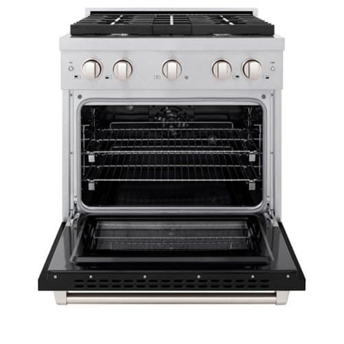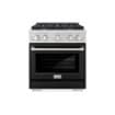 ZLINE - 30 in. Paramount Dual Fuel Satin Steel Range with 4 Burner Cooktop (SDRS-BLM-30) - Satin Steel/Black Matte