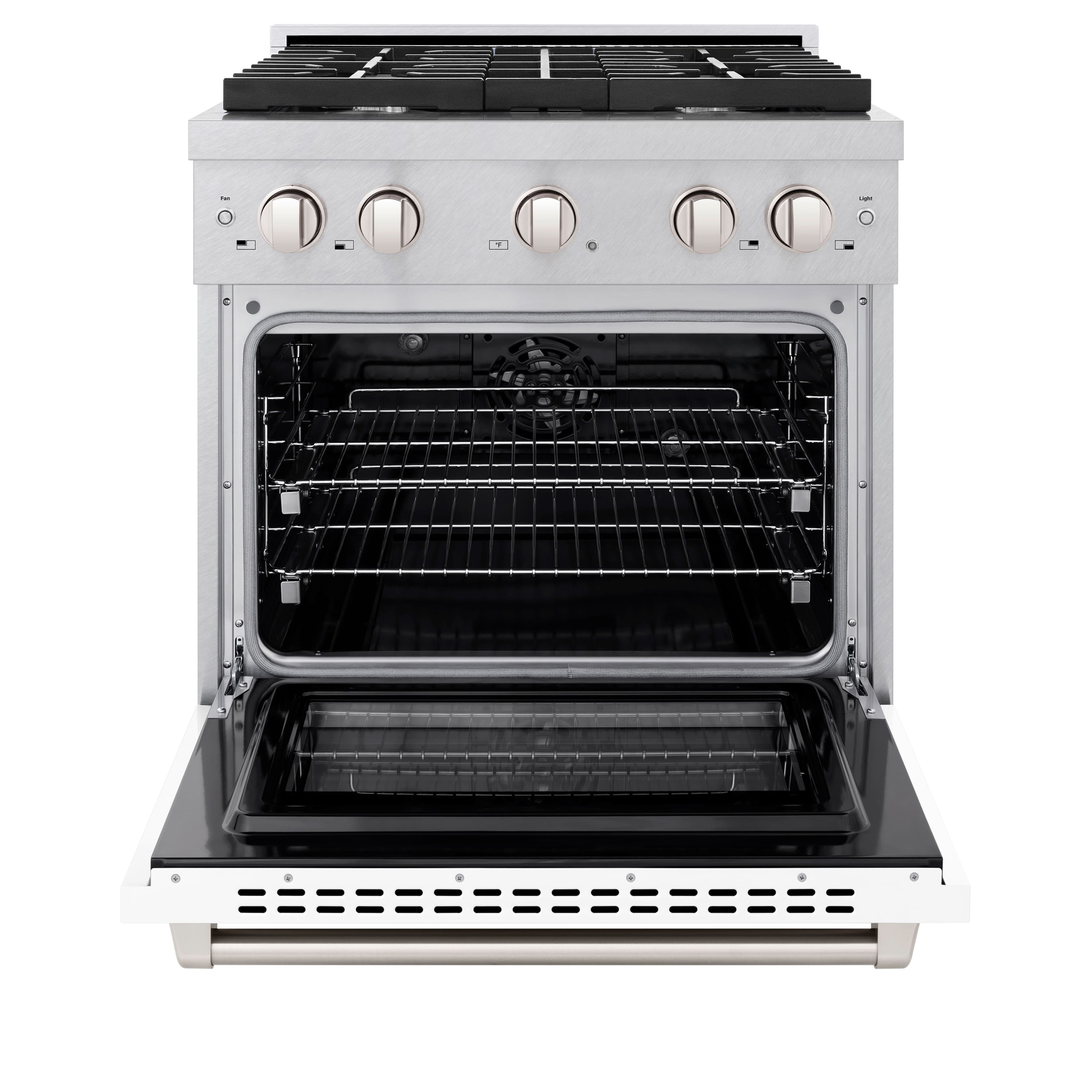 ZLINE - 30 in. Paramount Dual Fuel Satin Steel Range with 4 Burners (SDRS-WM-30) - Stain Steel/White Matte