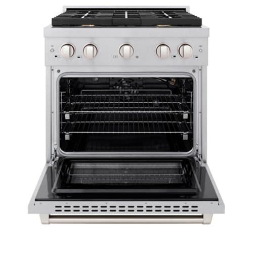 ZLINE - 30 in. Paramount Satin Stainless Gas Range w/ Convection Oven & 4 Brass Burners (SGRS-BR-30) - Stainless Steel