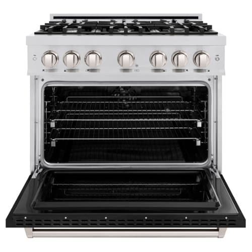Luxury isn’t meant to be desired - it’s meant to be attainable. The ZLINE 36 in. 5.2 cu. ft. Classic Dual Fuel Range with 6 Burner Gas Cooktop and Electric Convection Oven in Stainless Steel with Black Matte Door (CDR-BLM-36) combines the elegance of a hand-finished porcelain gas cooktop with 6 Italian-made auto-reignition burners, an electric convection oven with an energy-efficient cooling fan to ensure quiet operation, and a beautiful black matte door with a Landscape window design allowing you to master every meal. With a modern, timeless style and refined functionality, ZLINE Classic Dual Fuel Ranges are masterfully crafted to deliver an elevated culinary experience.